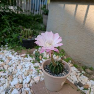 サボテン(月世界)が ちょうど今、 開花中なんです🌸✨✨ お花の中を覗いてみると 中には更に小さな 白いお花が✨✨ これはめしべみたいです その周りにピンクのおしべが 幾つもあって とても可愛らしい世界に なっています 何個か可愛らしい月世界があるので 土曜日の夜にオンラインショップで 販売したいと思います♡ 白いクマちゃんの鉢に植えてます🐻❄️🌸