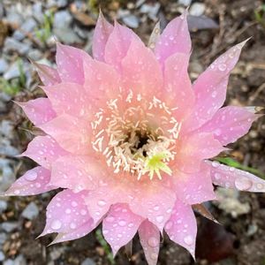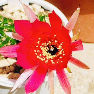 サボテンのツボミがマイク🎤のように育ってしまってバランス悪いなぁと思っていたら… 夜の開花と共に折れていました(T_T) 水分コントロールが必要なのかしら。 小さな花芽がまだあるので次回に期待します。 ガクッ💧
