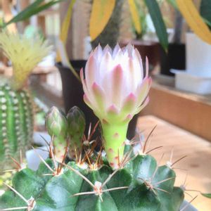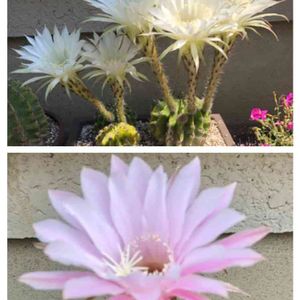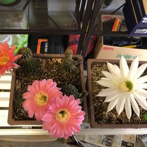 こんにちは🌞 実家のサボテンの花。 白いのは昨日、ピンクのは今日咲きました。 白いのは5つ一斉に咲きましたよ。せーので示し合わせたように咲くのね。