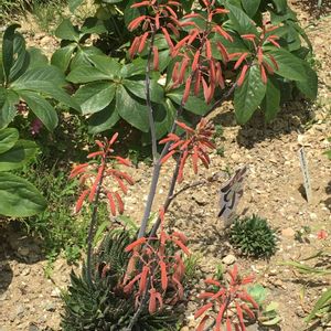 6時台は咲いていなかったけど、10時近く見に行ったら咲いていた。 棘に邪魔されて咲けるのか?と思っていたけど、棘が柔らかいタイプだから押し退けて咲いたね。 一昨日・昨日と2日連続(いや、3日連続だったか…)で雨だったから雨ざらしにしていた植物はいなかったけど、 4月辺りから雨の翌日って植物たちが生き生きして見えるというか、成長している感じがするのだが、気のせいか。 特にアロエが紅葉から緑になってくる速度が上がるような。葉のぷっくり具合が違うような。 水道水よりも自然の水やりの方が質が良いのかな。