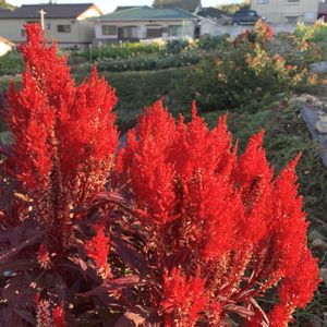 私のグリーンガーデン けいとうの赤が眩しいです。