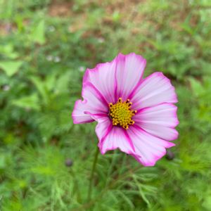昨日、今年の一番花、コスモス発見☺️ 昨年の零れ種?(私がばら撒いた種)が発芽して花が咲きました。 春のコスモスも良いですがやっぱり秋の秋桜が風情がありますね‥