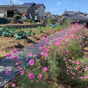 私のグリーンガーデンに植えたコスモスが今満開を迎えました。最高です。