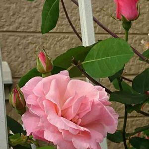 ちわっす🎶 美しい薔薇さん咲きました〜✨ ついてた🏷によると 大輪四季咲きバラ ピンク・シャトー様 だそうです。🏷の写真はもっとピンクピンクしてたんですけど咲いたのはちょっとオレンジ?ベージュ?がかったピンク色でした✨ 11月に地植えして今咲いてくれました✨ かわいい〜(●︎´ω`●︎)ニマァ ✨
