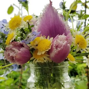 12時から☔が降ってきました 5月1日の切り花 小さいチューリップを 飾りました