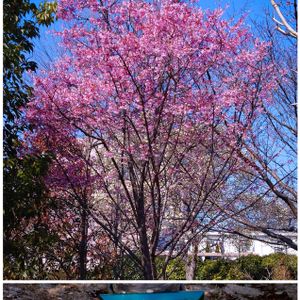 ずいぶん赤い桜だなぁと思ったら、カンヒザクラとの交配種なんですね📖 「オカメ」です🤭(農業試験場内にて)