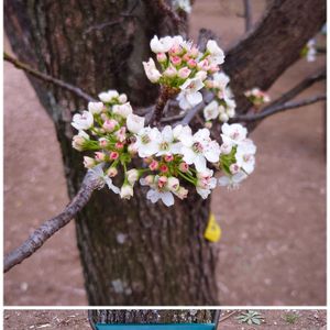 まだ咲き始めですかね🧐😀 枝々にたくさんの「マメナシ」の花のかたまりができています🙄🙌(農業試験場内にて)