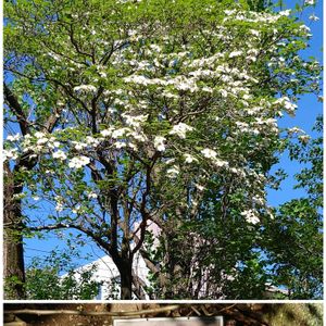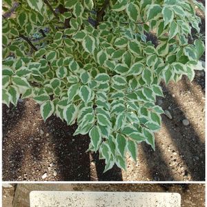 きれいな葉っぱですねぇ👀 ネームプレート、風化してよくめえない🤭「ヤマボウシ スノーアラウンドペイジ」です🧐(農業試験場内にて)