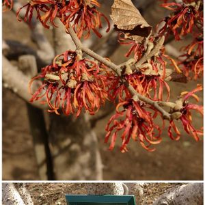 【1枚目】何やら赤い木が👀 むずかしい名前ですね。マンサクの仲間でした🧐 【2枚目】何やら黄色い木が👀 あらっ、同じような名前🧐 色違いの仲間でした😮 (農業試験場内にて) 【3枚目】困った問題です☹️ うちは三叉路の合流地点にあるんですけど、この時期は来る日も来る日もうちの門前にぜ~んぶ上手に吹き溜まります😑
