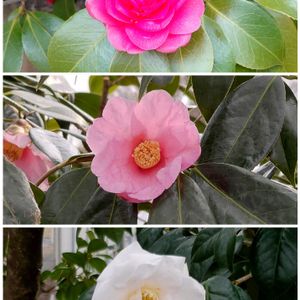 「あぁー、もうちょっと開いてくれー🙏」と願わずにいられません😀 残念でしたが、イチオシのツバキ・タマノウラです。いい縁取りです❣️(農業試験場内にて)