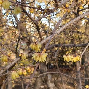 見上げてみると🙃、青空に映えるなぁ😀❀ ろう梅が見頃でした🤩💃(農業試験場内にて)