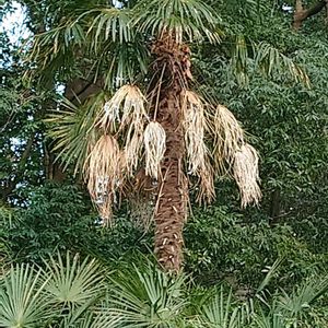 緑の背景のなかでいままで気がつきませんでしたが、発見👀 一瞬びっくりしましたが、これはシュロというやつですよね😀 元首相の村山トンちゃんの眉毛みたい🤭と思いつつ、しばしニヤニヤしながら観察していました。とても気に入りました🤩🥰(農業試験場内にて)