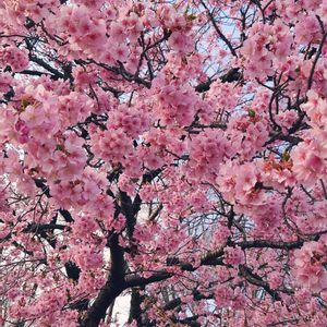 早咲き桜が満開でした② ソメイヨシノでもなく、河津桜でもなさそう🙄 なんという種類だろう🧐🤔 目の高さまで咲き誇っていました🙌💃🎉🎊 (農業試験場内にて)