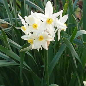 路端の花壇に、なぜかこれだけが咲いていました。やがて一面の水仙になるのかなぁ🤔 なってほしいなぁ🙏、と思いました😀