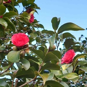 双子みたいなつばきでした👶👶😀(農業試験場内にて) これからスギ花粉爆弾をよけながら、出勤しまーす🤧🥹🙋