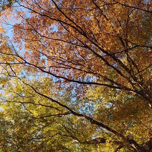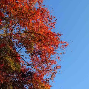 見上げると🤔、紅葉🟥&黄葉🟨&青空🟦のコラボでした😮🥳(農業試験場内の遊歩道にて)