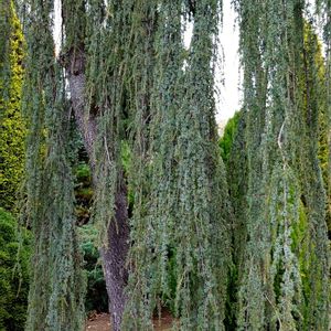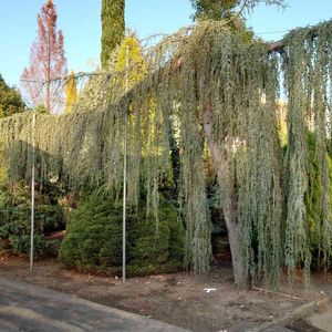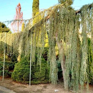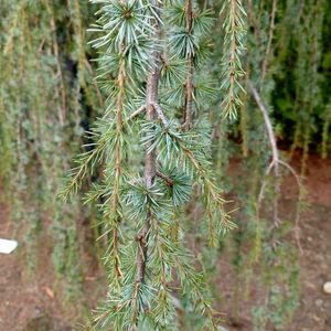 緑のカーテンの正体③ なんと名札はありませんでした😢 そこでレンズで調べたところ、「シダレアトラスシーダー」が有力です😀(農業試験場にて)