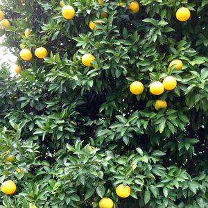 近所の会社の駐車場に夏みかんみたいなものがたわわに実っています🍊 ゆずではなさそう。どーするんだろ⁉🤔