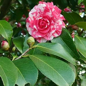 まんまるもっこりのツバキさんもありました(農業試験場内の遊歩道にて)