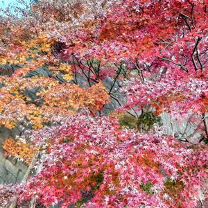 今日は赤と黄(オレンジ)に白がまざったもみじです😀 3色が織りなすグラデーションがなんとも言えません🥰(農業試験場内の遊歩道にて)