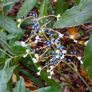黒い粒●がいっぱいありますね。ヤブミョウガ発見🧐 草がいっぱい生えているところで、🦟が戦闘機のように襲ってきました😬 とっとと逃げました💨(農業試験場内にて)
