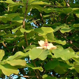 葉っぱが大きくて、下から見上げてもなかなか見ることができない朴の木の花 遠方を見下ろすと綺麗に咲いていました🥰