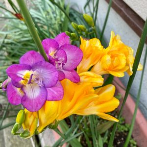 いつもならチューリップの前に咲くフリージア。今年はどうしたことか…チューリップも散った後にやっと‼️ 咲いてくれてありがとう💛