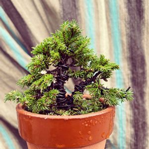 昨日迎え蝦夷松の素材。 とりあえず敵期じゃないから軽い芽摘みと、適応性が強い下への針金修正。 双幹可愛いけどモサモサ… もう少し様子みて、蒸れるようなら小枝を何本か抜いてみよう