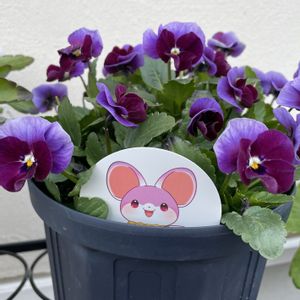 見元ビオラ チェリーズがモリモリ😆✨ 常にこのくらいの数のお花をキープしつつ 元気に育ってくれてます♪ タグのイラストがネズミなだけあって 子だくさん(お花たくさん)な子👏 ぷちぷち可愛いです💕