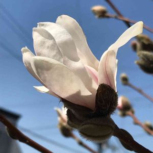 ヒメコブシの花も、もふもふを脱ぎ捨てようと❣️ けど明日から3日間、雨予報😓 慌てずゆっくりねー😅🤣
