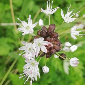 (2023年5月24日 12:21頃 撮影:Galaxy A53) 前にハーブ専門店で貰ってきたノビル。 上の方を大半料理に使ってしまったので、後はそのままにしたら花がついた。種子が取れるならほしいかな。
