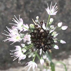 見てますか😃 リクエストにお答えして ノビルのお花です 上の茶色のがムカゴです