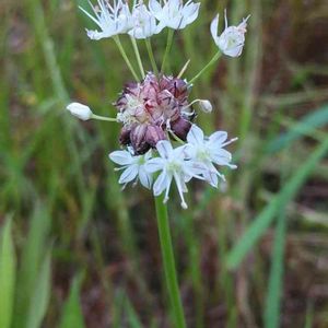 ノビル(野蒜) ネギやニラの仲間。3日前に見つけた時は、蕾だったので、咲いている頃だと思いながら出かけてみると、河川敷の除草が行われた後でした(ゝω∂)。 ガッカリ…気を取り直して他を探すと、やっとありました(^.^) あまり数多くはありません。花の穂についているムカゴで繁殖するとのこと。万葉の時代からあったと言われ、古代人にも食べられていたと知ると、大事にしたいな~と思います✨ちょっとだけムカゴをもって帰り、植木鉢に埋めました。