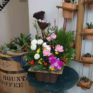 お正月用にお花を購入しました。 多肉ちゃんと一緒に👀📷✨