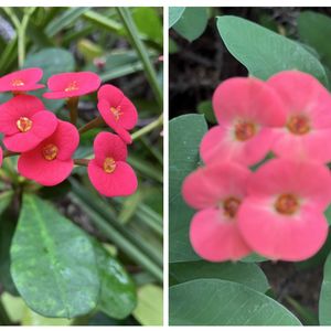 おはようございます🌅😊✨ 今朝は薄曇りの寒い朝です🥶⛅️ ✨今日のお花✨🌸🌿🌵ハナキリン🌵🌿🌸です😆👍✨💕 この前、お出かけ先の真岡市井頭公園の大温室(花ちょう遊館)のサバンナゾーンで撮影しました😆👍🌵🏜️ 真岡市井頭公園も、いろいろあって楽しめます😆😆💕💕✨✨ コラージュ有りと無しで、投稿しますね🤳✌️ 因みに、1枚目のコラージュ有りの写真と2枚目、3枚目のコラージュ無しのハナキリンは同じです😆👍🌵🌿🦒🌸 綺麗で可愛らしいお花です🌸🌸💕💕🥰🥰 茎のトゲは鋭く恐しい感じですが😅👍✨🌸🌵