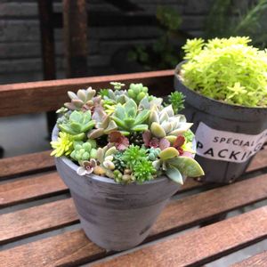 スカスカになっていた寄せ植えを仕立て直し♪ だんだん寄せ植えができる気温になってきましたね✨ 夏顔緑の子ばかりだった寄せ植えを仕立て直ししました💕 多肉さんたちに少しずつ色づいてきたのでカラフルになってきましたね🥰