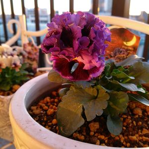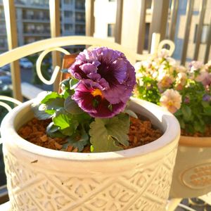 フレアブルー、ちょっと色変? 縁取りがなくて紫の強い子が出てきました😊 休みの日はこの時間にゆっくりベランダにいられます🩷