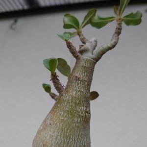 出始めの葉の変形が気になる(上枝2本) 何かが影響しているはず🤔 アデニウムは太陽感知が敏感な印象 今年は特に…葉っぱがすぐ南向く🌞 多分、3階だし角度が影響してるかな🙄 晴れてたら2~3日で鉢を回している😂 ということは💡 枝を流したい方向で暫く固定すれば… 我が家の環境独特の姿になるかもしれない!