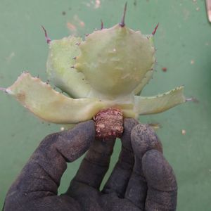 昨日の画像 購入時は何も分からなかったけど 昨日あらためて、胴切り苗だったんだと… 細く数も少ない根…✄ だったので発根チャレンジ 他のアガベは土に これは水で 初めてを少しずつ経験していく