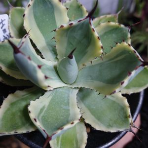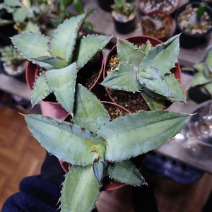 実は好きなアガベのひとつ🤭 植木市行ってもナーセリーでも 最近はチタノタ○○が多くて見かけない🤣 多過ぎるとどれも同じに見える笑 (アイドルが皆同じに見えるやつ的な) SNSで魅力的な画像を見過ぎたのもあるか?🤔笑 雷神系笹系も好きだけど ホントに見かけない😂 ちょっと徒長気味の吉祥冠錦