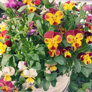 タキイのF1ビビ トリコロール(オータムクラシック)🌺 アンティークカラーも混ざっていてお気に入り😍 こちらはこれから切り戻ししてみよっかな〜🎵