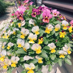 主人がポットで買ってきてくれたビオラさん✨ ビビトリコロール 3色咲き✨ カットしてまたカットして大きくなってやっと咲き始めてきました✨🙌
