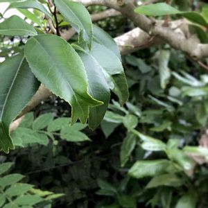 今日散歩中に見つけた植物です。 ツバキみたいな葉っぱだけど先端がみんな3つくらいに分かれていました。 どなたかわかる方いましたらご教授ください。