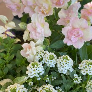 今朝のベランダより1枚 ꕤ バラ咲きジュリアン•ミステリーモカ ꕤ この子もシエルブリエに続きお花の色が 変わってしまいました😅 左下のpicは1月の初めにこの子をお迎えした時に 撮影したものです🌸 お迎えした時のお花は咲き進んでしまったので 全部カットし、そのあと出てきたお花は ピンク色ではなくなりました🙄 このお色も素敵です💓