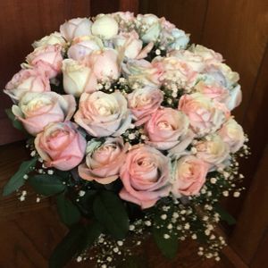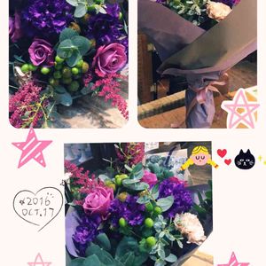 お花屋さんに勤めてるんだけど、仲間うちでお誕生日の花束を贈り合いしてます 誕生日は2日前だったけど、シフトの関係で今日、いただきました💕 普段、作ってばかりだからとっても嬉しいです😍