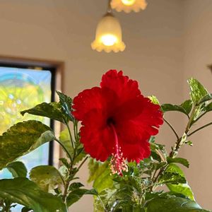 部屋の中に避難していたハイビスカス メドゥーサ ついに、今年最後の蕾を開きました❤(ӦvӦ。)🌺 来年まで、冬越しして、また大きな花を咲かせてほしい