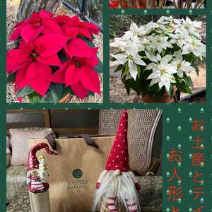 昨日の箱根のお土産の人形と、テイクアウトのケーキ ニコライバーグマン氏の箱根ガーデンで、記念のお人形 可愛い妖精たちは、サンタさんのお手伝いかな⁉️ クラブアップルや、ローズヒップ飾りも楽しく 赤と白のポインセチアも素敵でした☆.。.:.*・゚☆
