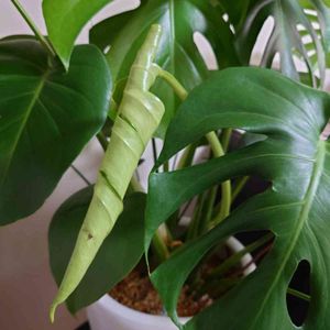 モンステラ様をお迎えしてから初めての 新芽発見😆 こんなにネジネジなんですねぇ〜!楽しい😊 開くのが楽しみ✨