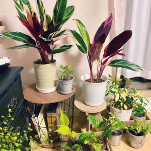 ストロマンテの根が鉢穴から飛び出し始めていたので株分け🌿 根がギチギチに絡み合っていて抜けないし分けられないしで30分ほど格闘してやっと完了😅 結構ブチブチ根が切れてしまったので今後が心配です💦 あと鉢が気に入らない…鉢カバー買おう… ついでに100円で買ってきたクロトンも植え替えました!