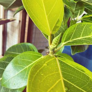 先週届いたアルテシーマに触発されて仲間のティネケを買ってしまった😂 葉の裏と中心の筋が赤くてかわいすぎる… 買ったままの鉢だと小さそうなので7号辺りの鉢に植え替え予定☺️